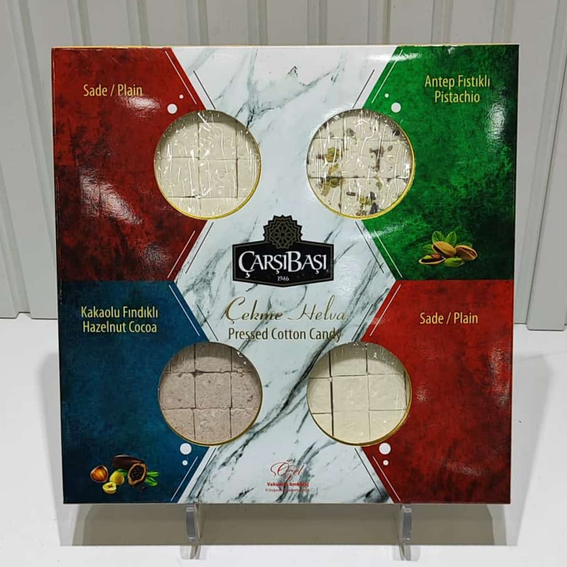 Karışık çekme helva, üç farklı lezzeti bir arada sunan geleneksel çekme helva paketi. Toplam 400 g.